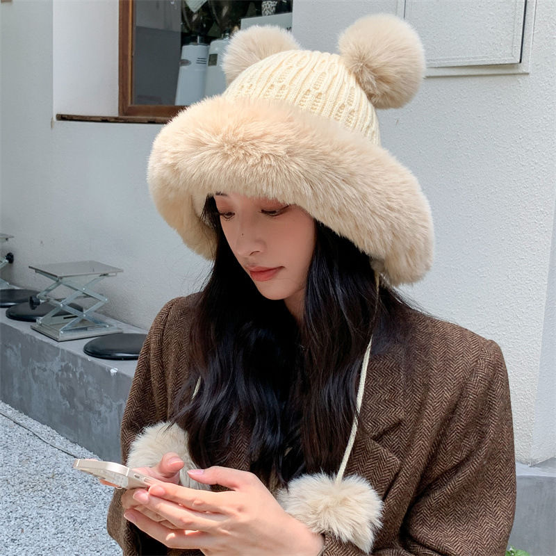 Windproof Knitted Fur Ear Flaps Winter Hat